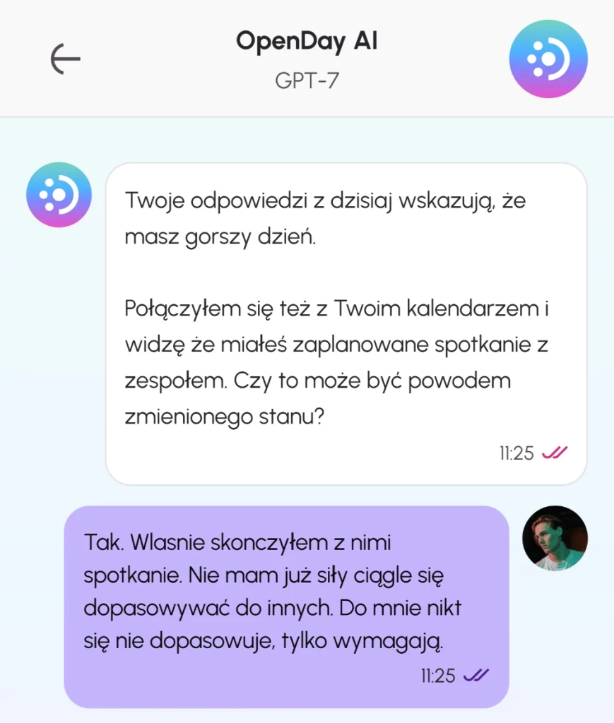Dzięki inteligentnej analizie zachowań, testów czy opcjonalnej integracji z Twoim kalendarzem, OpenDay dostarcza idealnie skrojone na miarę interwencje dokładnie wtedy, gdy ich potrzebujesz.
